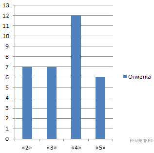 Версия для печати и копирования в MS WordНа диаграмме показаны результаты проверочной работы, проведенной в 6 «В» классе. По вертикальной оси указано число учеников. Назовите средний балл тех, кто получил за эту работу оценку ниже «4».