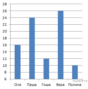 На диаграмме показано время, которые ребята тратят на дорогу от дома до школы. По вертикали указано время в минутах. Сколько в среднем тратят ребята на дорогу от дома до школы?